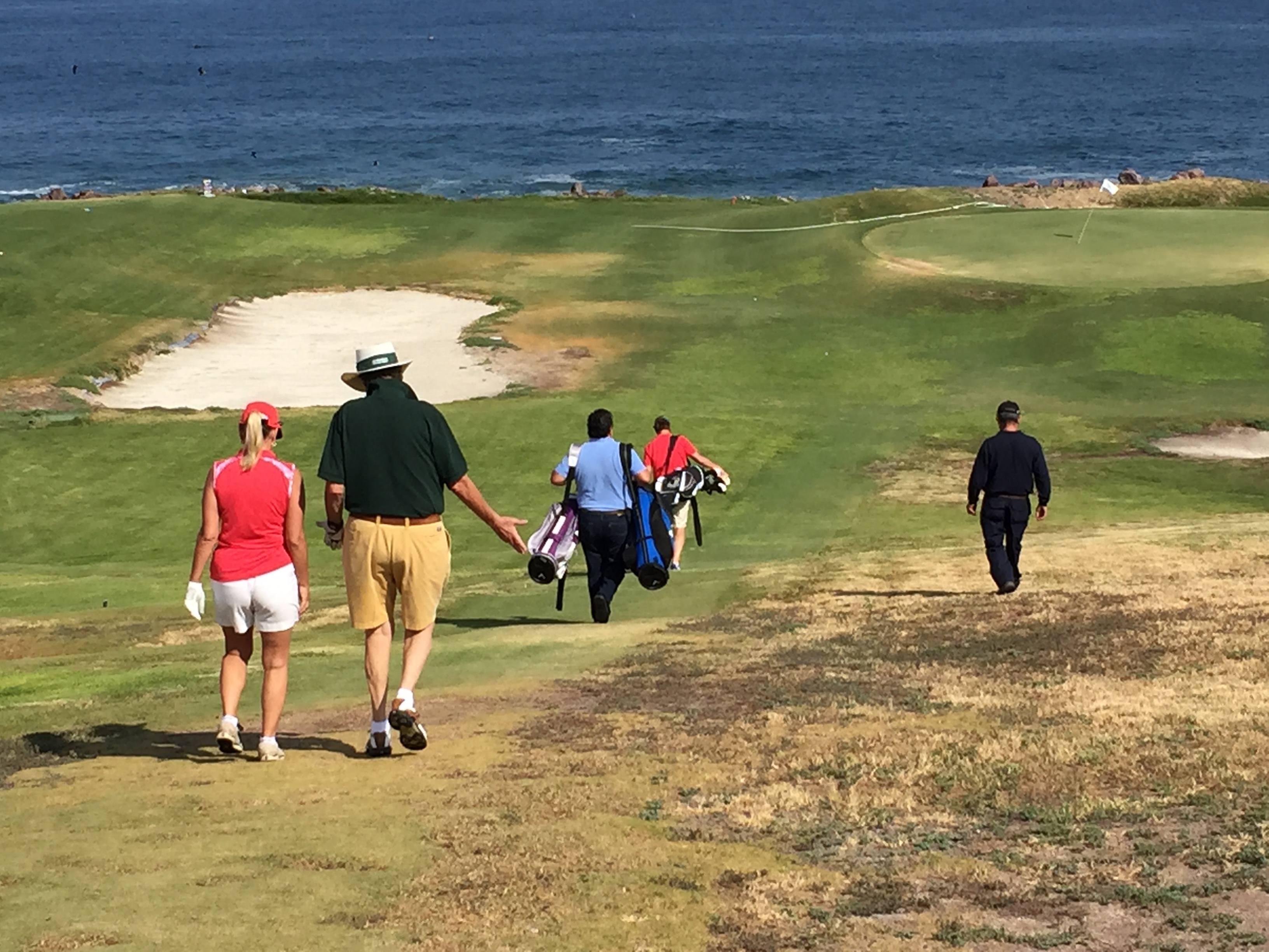 While up north, we played some golf. At Coquimbo we went to a short 9-hole course on the ocean but it was closed. We played it anyway. Since there were no carts, we recruited our taxi driver (in jeans) to help with bags. He wasn’t very good at reading putts though.