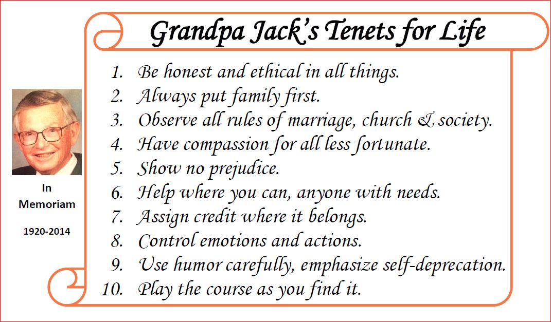 It also let me attend the send-off for my hero, my father, who passed peacefully after 94 ½ years.  In addition to being a great family man, he was the most ethical business person I’ve ever known and a mentor to many (especially me). Mom was a trooper all weekend despite losing the love her life and husband of 71 years. Dad's advice My son Patrick gave a heartwarming eulogy (on YouTube, though not great video quality at   https://www.youtube.com/watch?v=ZXjGcJZPy0U).   Debra organized an amazing “Heaven’s Gate Tailgate” after the burial to celebrate Dad’s love of ND Football and the great tailgate parties we had over the years he lived in South Bend – I don’t think he ever missed one.  At the end of the day, the whole clan had a “touch” football game that ran over 3 hours, just like when we were kids.  We senior citizens had to show the next two generations what we (thought we) were made of –  we were sore for weeks.