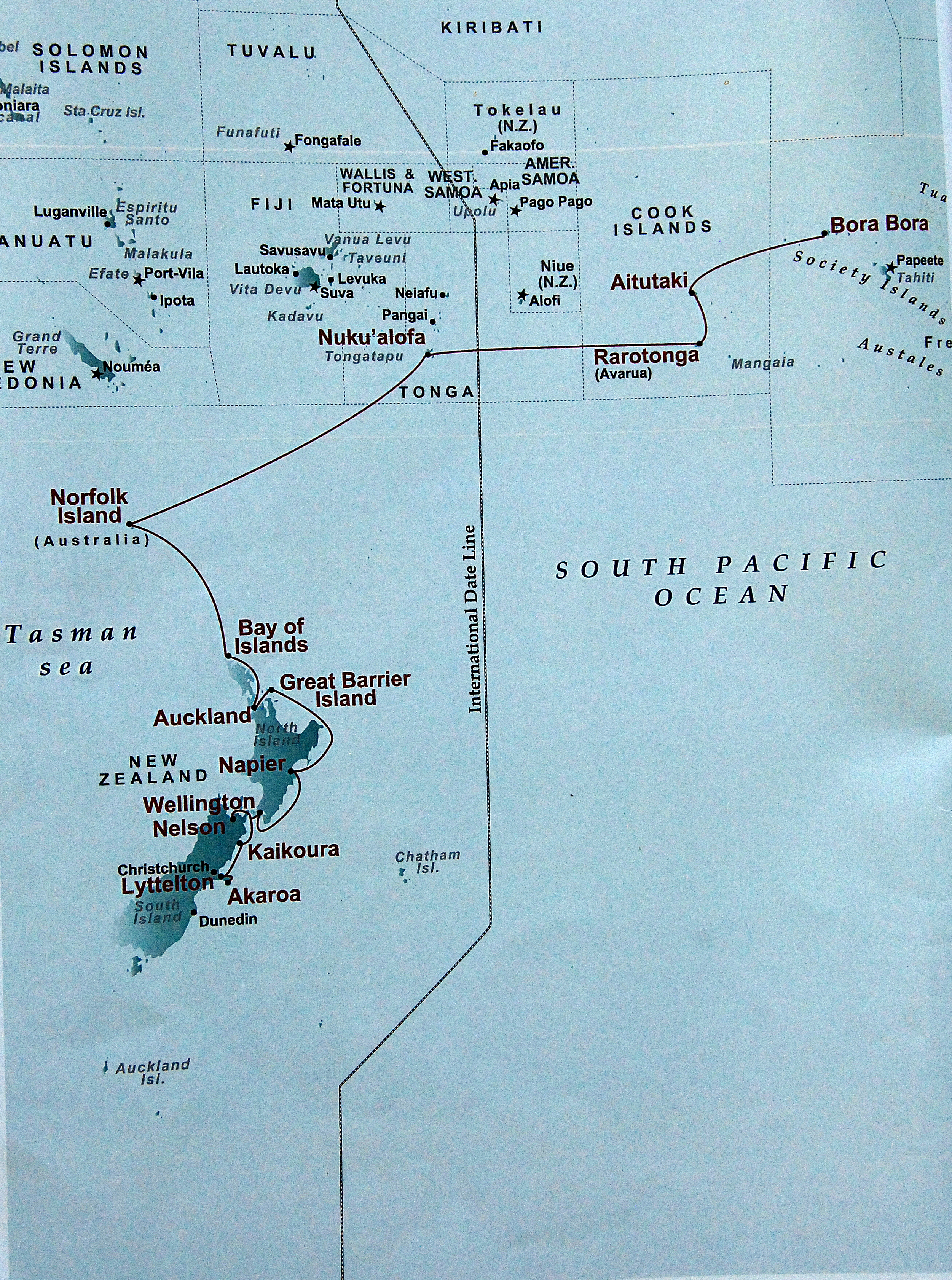For two weeks we sailed leisurely from French Polynesia to New Zealand. Typically 2 days of sailing, followed by a day at a Pacific island then repeated until NZ. Cook Islands, Tonga, Norfolk Island – all small, generally settled by Polynesians. On the ship there’s plenty to do. Apartment changes, a good gym, interesting speakers, movies, soccer with a very intense young crew, cricket, tennis, golf simulator and of course the pool, fine dining, and very fine drinking. It amazed me how busy we were the entire time. The Cook Islands are beautiful, as is Norfolk Island – Tonga, the only remaining monarchy in the South Pacific is less interesting. I’m sure the ocean can be violent, but our long cruise across the second half of the Pacific Ocean was calm and beautiful the entire time. We now head into New Zealand, starting in Bay of Islands in the north. We have a busy schedule of golf, tours, and visiting friends. Looking forward to it.