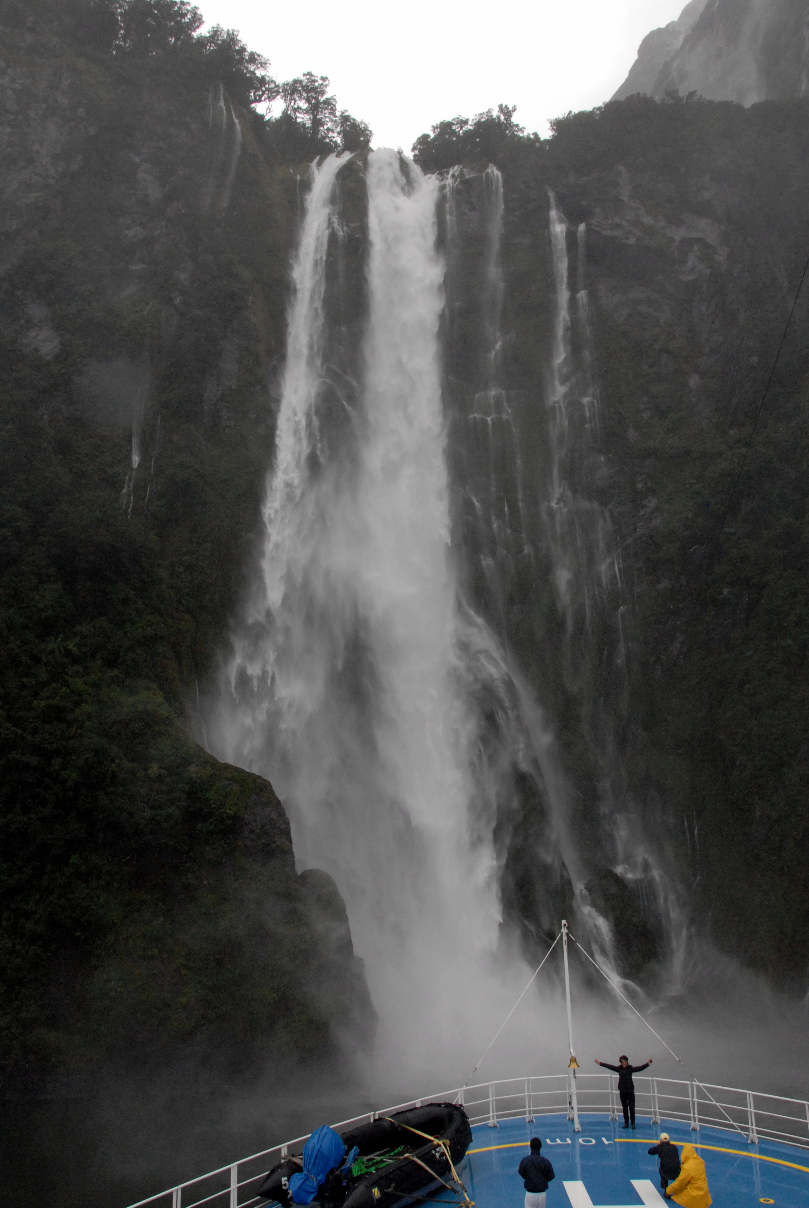 Our final New Zealand stop was in Milford Sound in the Fjordland region. It was cold and rainy, but then it rains 286 inches per year there! We went on a Zodiac tour of the area despite the weather. Magnificent waterfalls and mountains soaring from the water to the sky. The thundering falls only added to our awe.