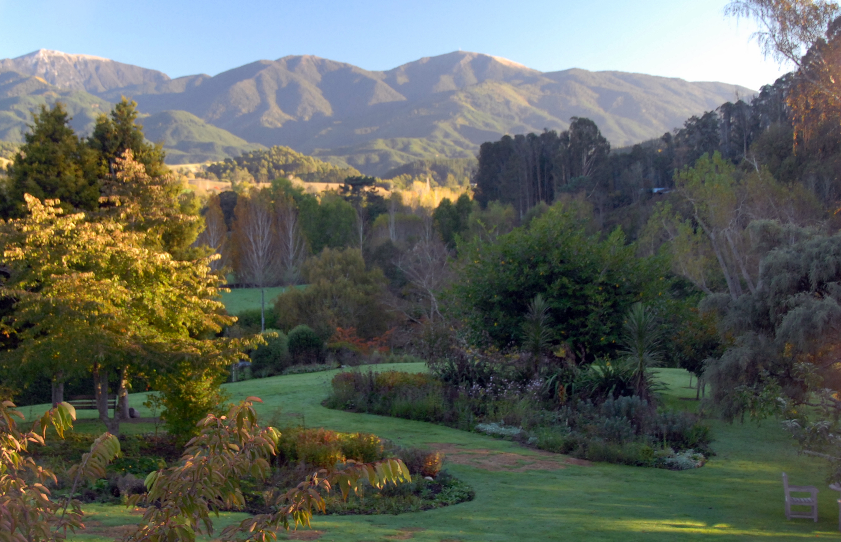 We think of it as a high-end B&B, but fine dining is included for all meals.  It’s owned by a lovely couple who worked in London and built a beautiful home in this NZ valley.  They had so many friends visit, that they decided to make it a Lodge and made it their career.  They hired a great staff and provide everything you could possibly want on a get-away vacation.  When we woke up in the morning, the view from our window was stunning – like Vermont at peak autumn.
