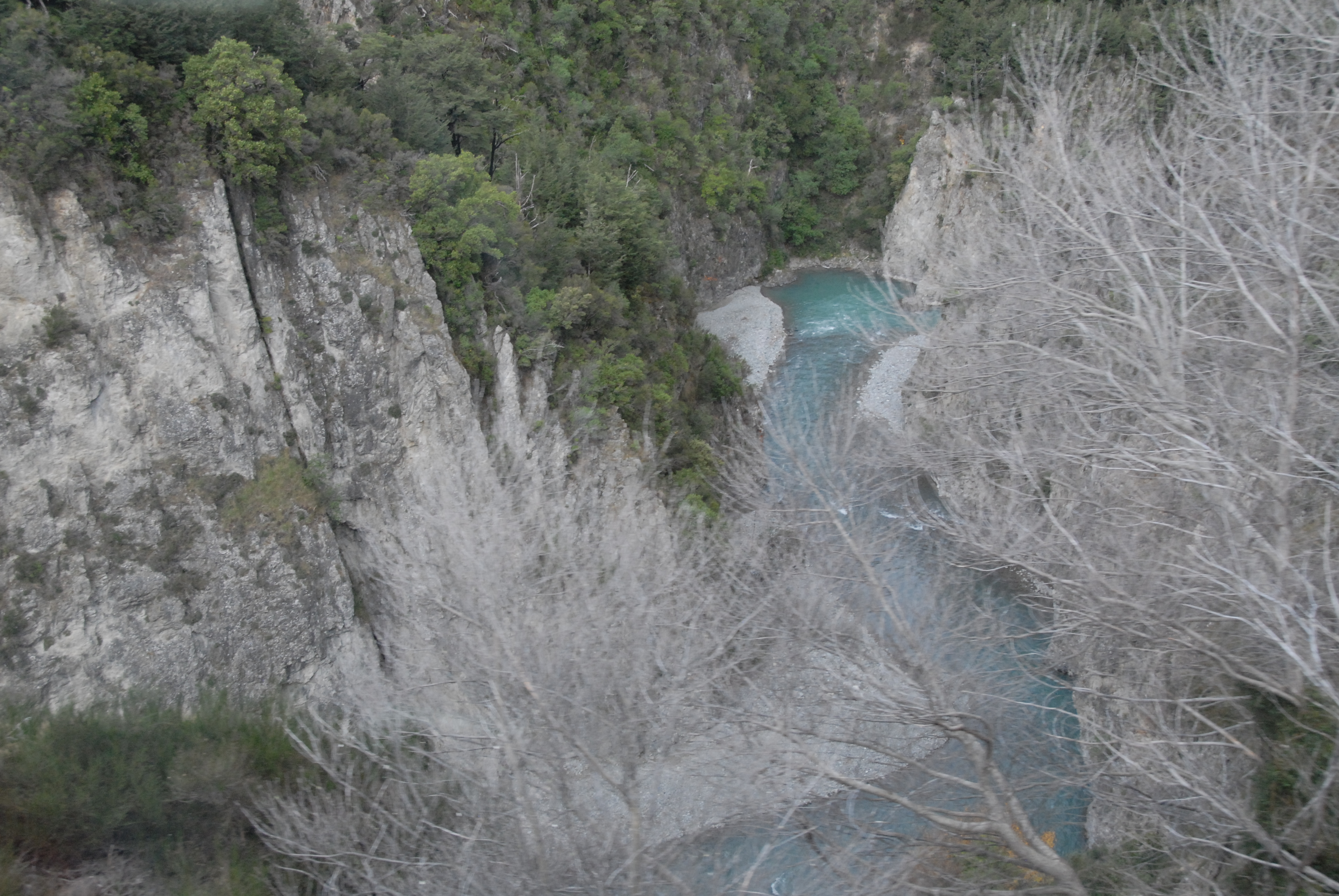 DSC_0624Next we boarded the Tranz Alpine Railway to cross the island through Arthurs Pass. This ride is rated as one of the top train journeys of the world. Unfortunately, the weather was pretty ugly. It was still very scenic and I managed to get some pretty good photos because they have a special car with NO WINDOWS for taking pictures. You can stick your head or camera out in the open and get some great shots – or have your camera (or head) ripped off entering one of the 14 tunnels. Seriously, you could easily touch the tunnel walls if you had a death wish.  And no liability forms to sign.