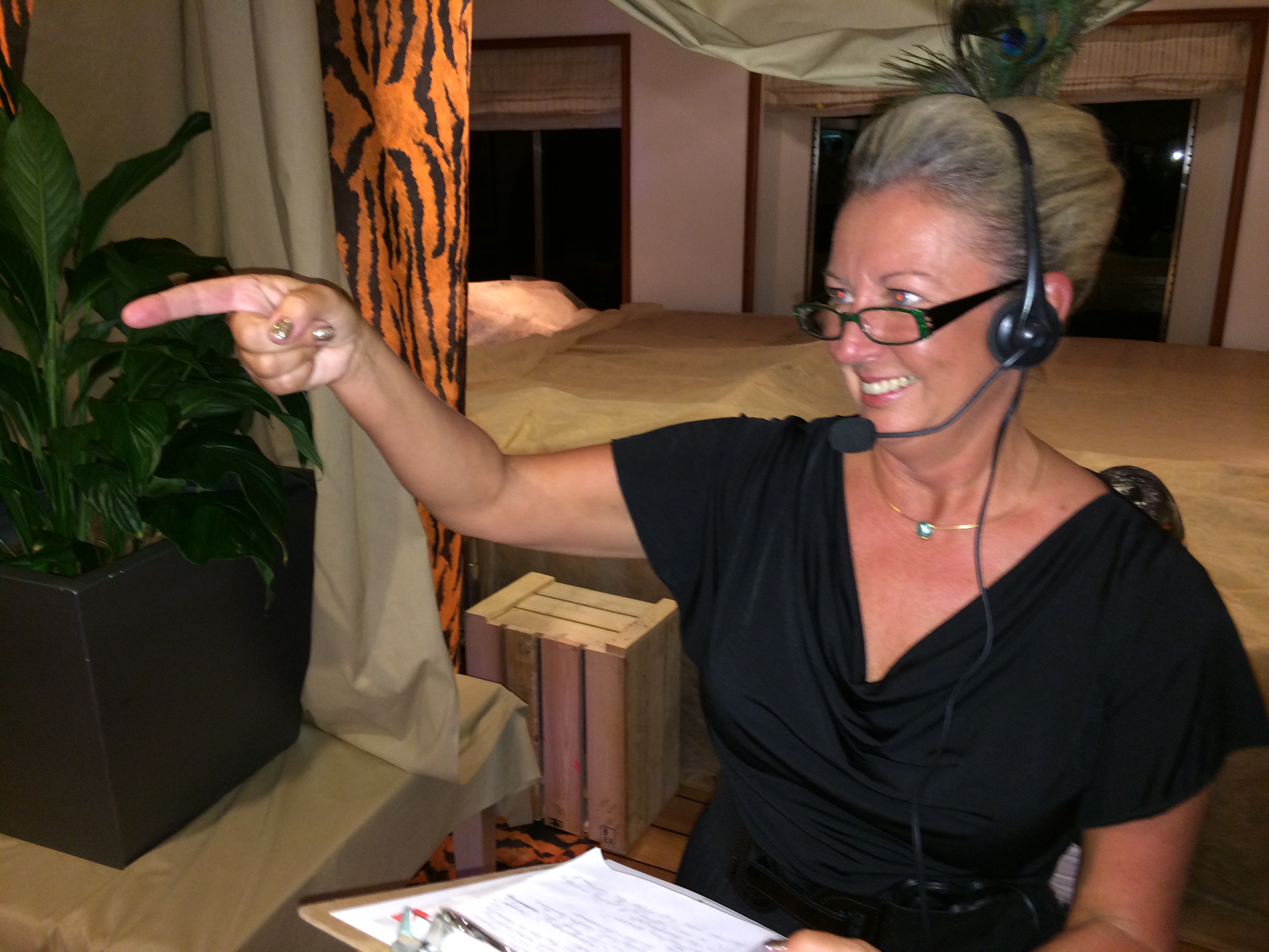We re-boarded the Ship after Christchurch to continue the trip down the East coast. We both volunteered for a role in a dinner murder-mystery enroute to Akaroa. Debra was the wedding planner (naturally).
