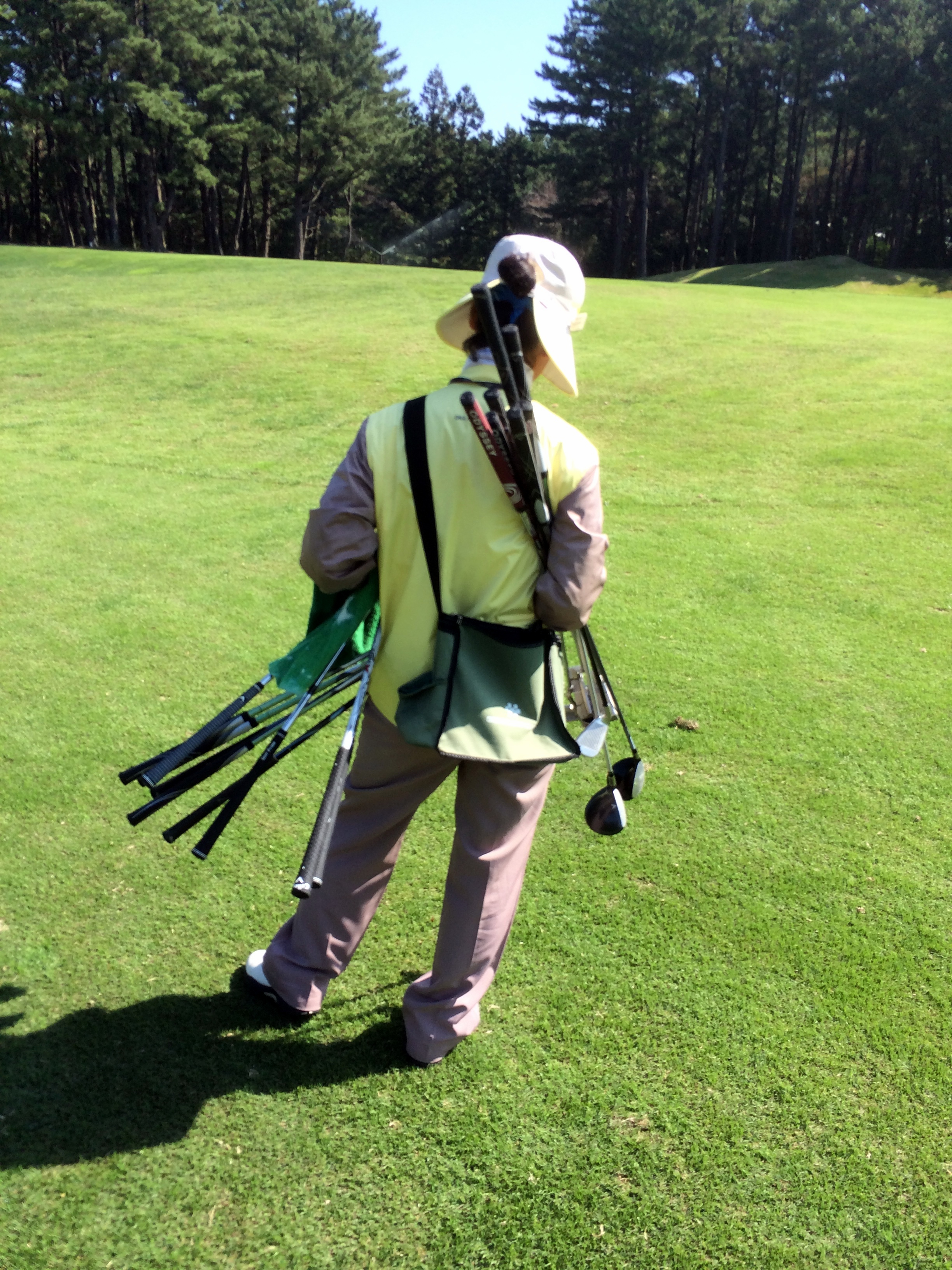 IMG_0719-001We also tried out golf, Korean style.  Here, the clubs are all loaded into a cart for 5 people.  The cart follows on the cart path automatically as the women caddie run back-and-forth delivering golf clubs to the foursome.